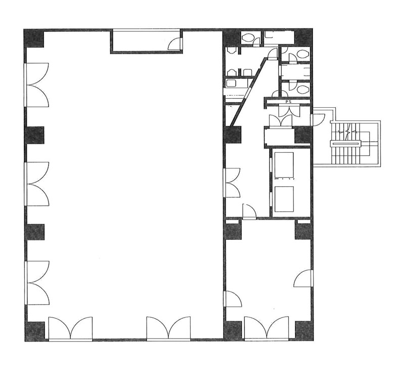 御成門駅より徒歩1分、港区新橋6丁目にある賃貸オフィスビルです。1991年竣工で、鉄骨鉄筋コンクリート造(SRC造)です。黒をベースにオレンジのタイルがアクセントになった特徴的な外観で、向かいには郵便局があり、視認性も良好です。地上9階建てで、エレベーターは2基設置されています。1フロア1テナント仕様で、24時間の機械警備が導入されており、セキュリティ面も安心して利用できます。