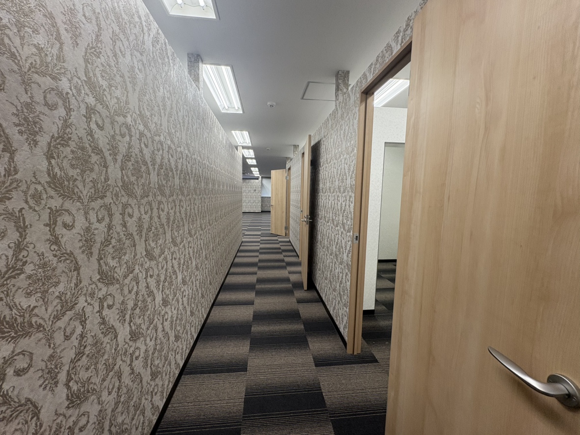 このオフィスの最大の特徴は、ハーフセットアップ仕様による即入居可能な環境です。6名会議室2室、10名会議室1室、社内会議室1室が什器・モニター完備で用意されており、初期投資を大幅に抑制できます。リニューアル済みの給湯室とトイレ設備も、社員の快適性を重視した設計となっています。