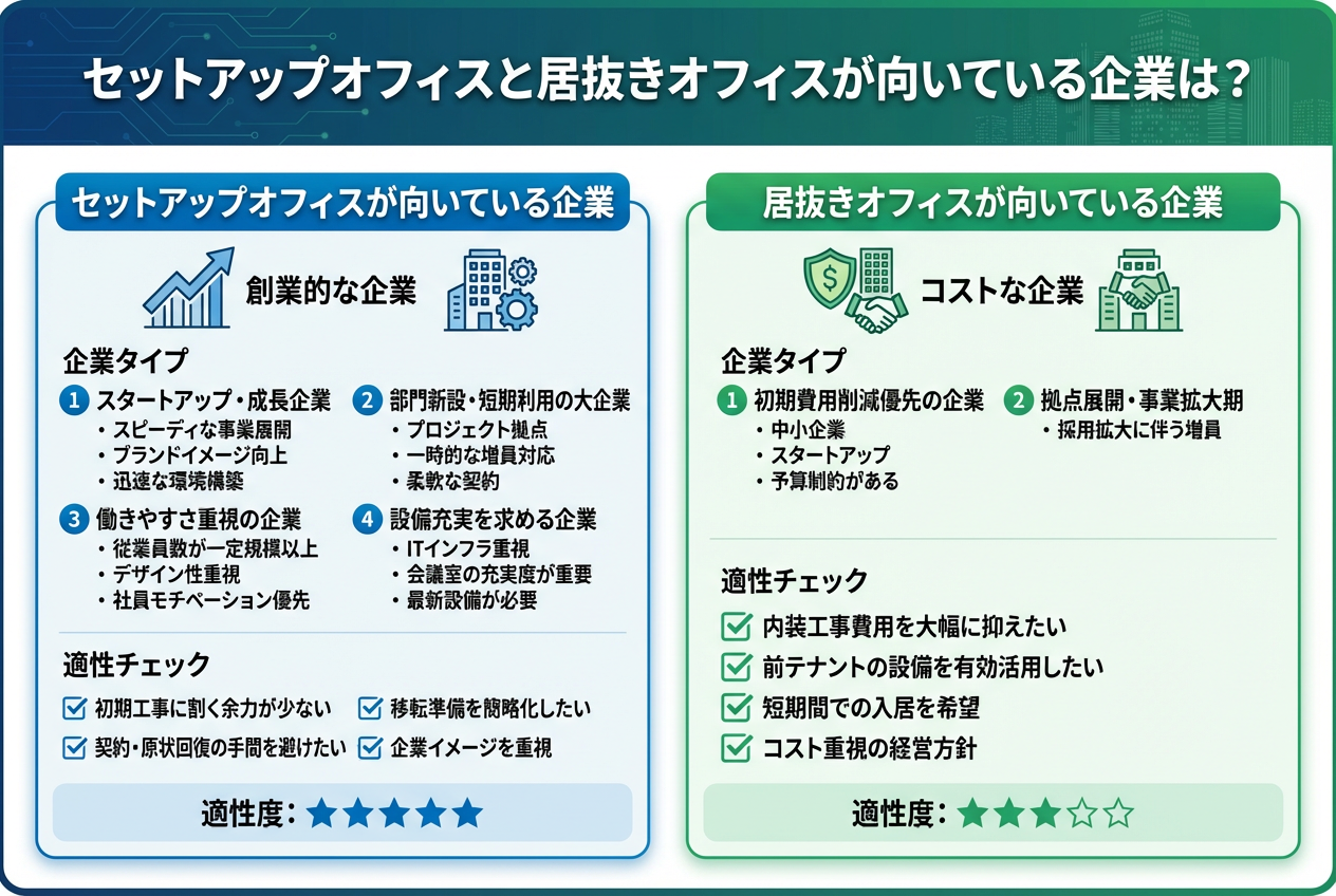 セットアップオフィスと居抜きオフィスが向いている企業は?