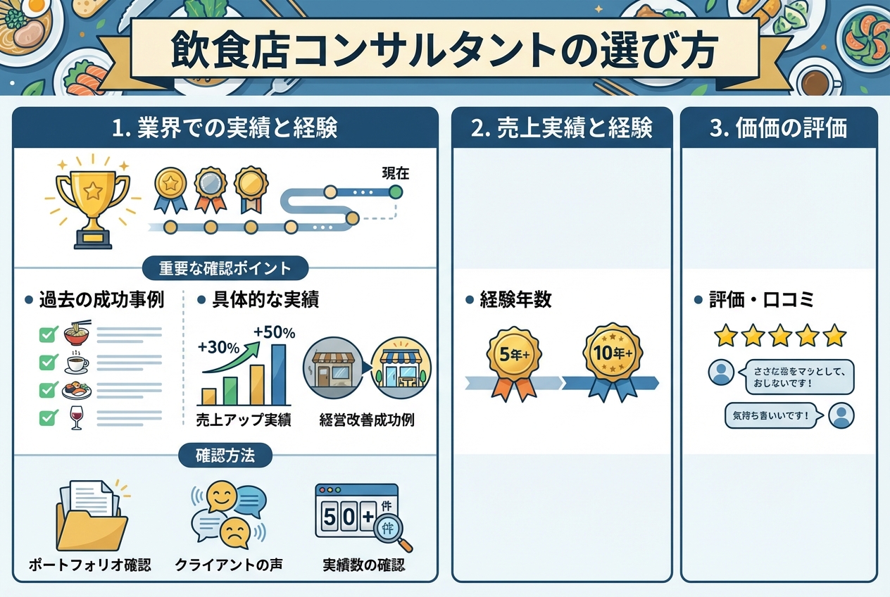 飲食店コンサルタントを選ぶ際には、実績や専門性、提案力などさまざまなポイントを考慮する必要があります。適切なコンサルタントを選ぶことが、経営改善や売上アップの鍵となります。