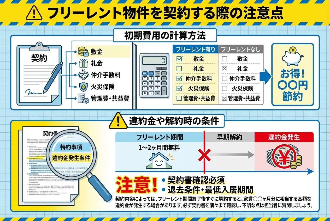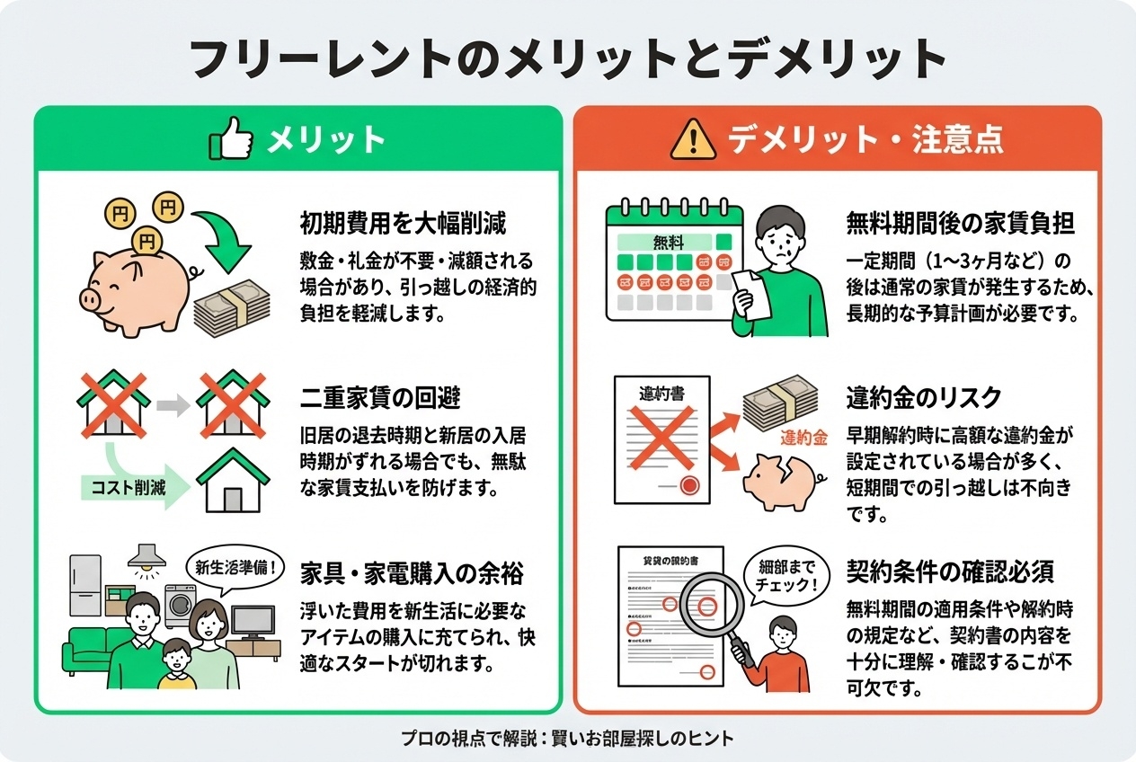 フリーレントには初期費用を抑えるメリットと、契約条件への注意点があります。