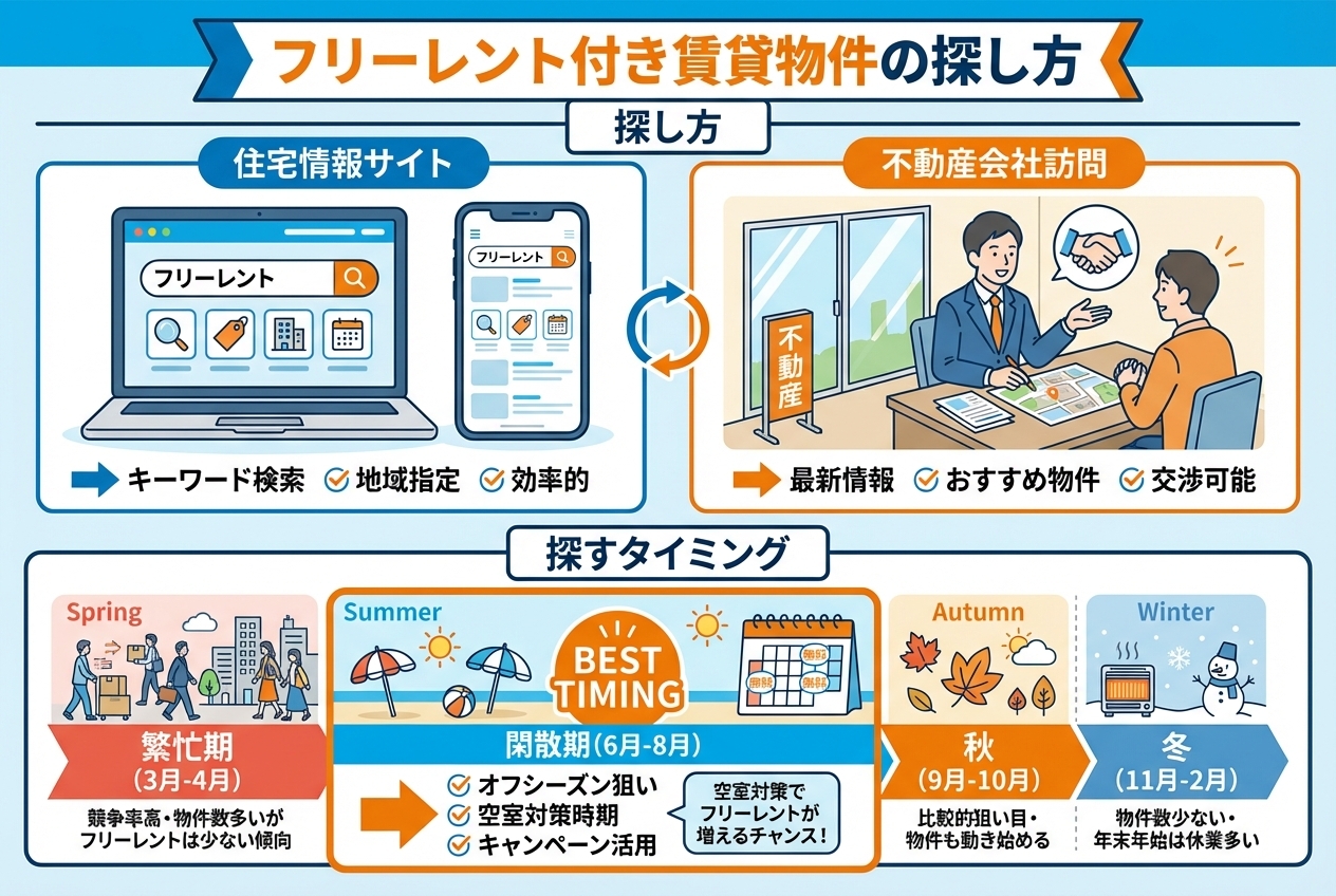 フリーレント物件は賃貸サイトや不動産会社で探すことができます。