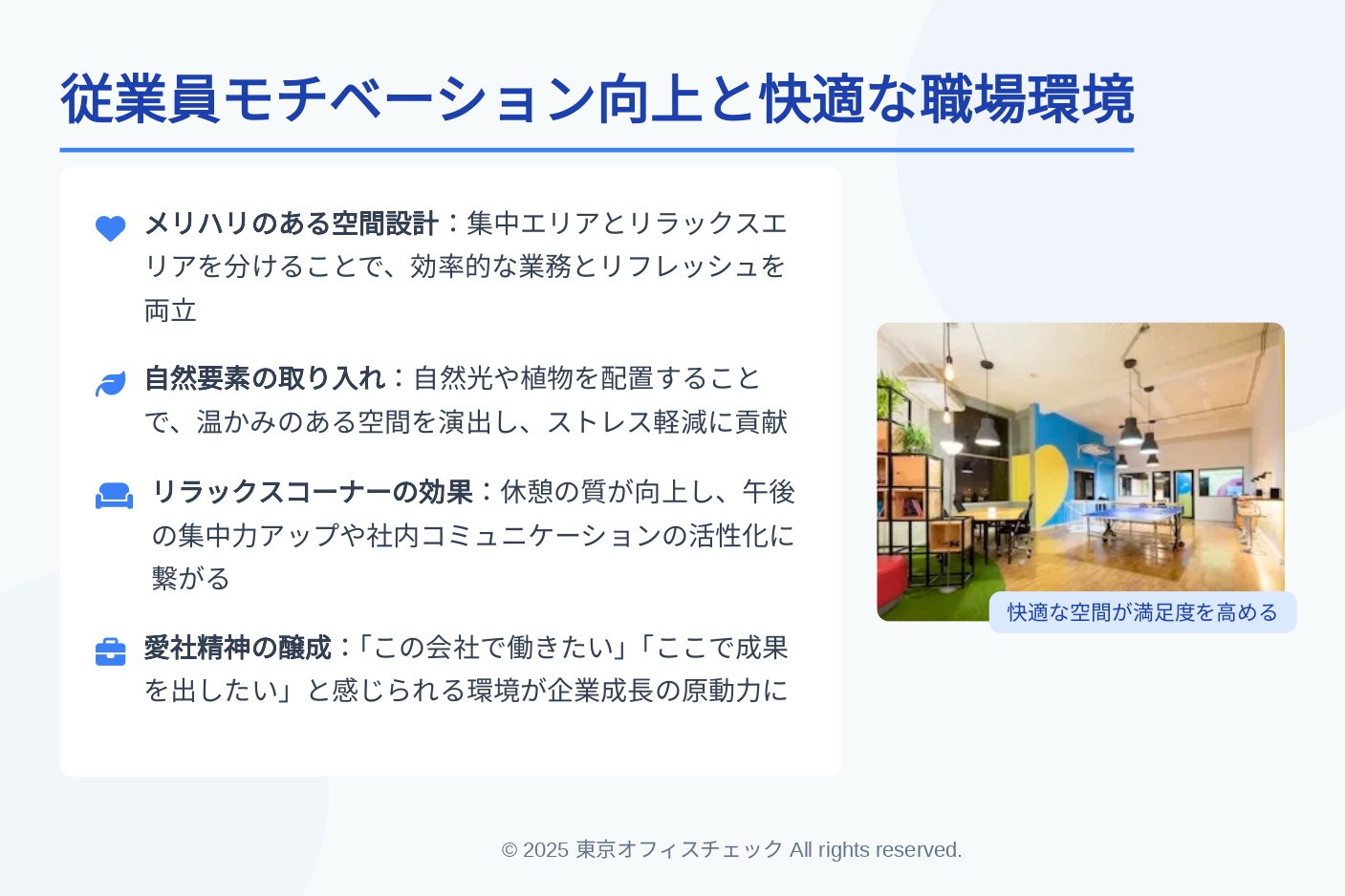 従業員満足度が高まるオフィス空間