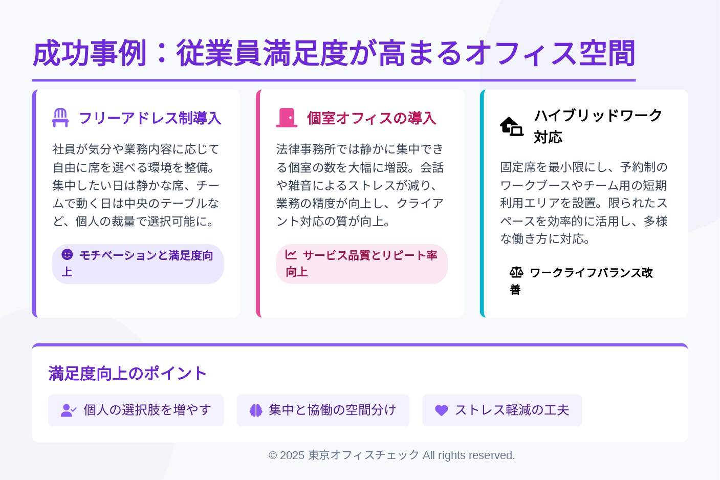 ▶ 成功ポイント:職種に合わせた空間設計で集中力と品質を向上