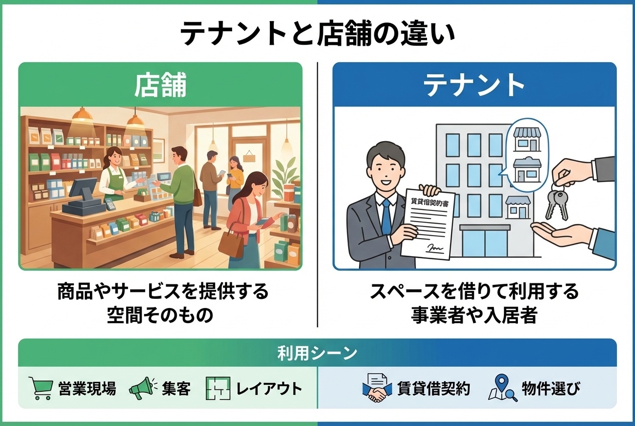テナントと店舗は意味や使われ方に違いがあります。それぞれの特徴を理解しましょう。
