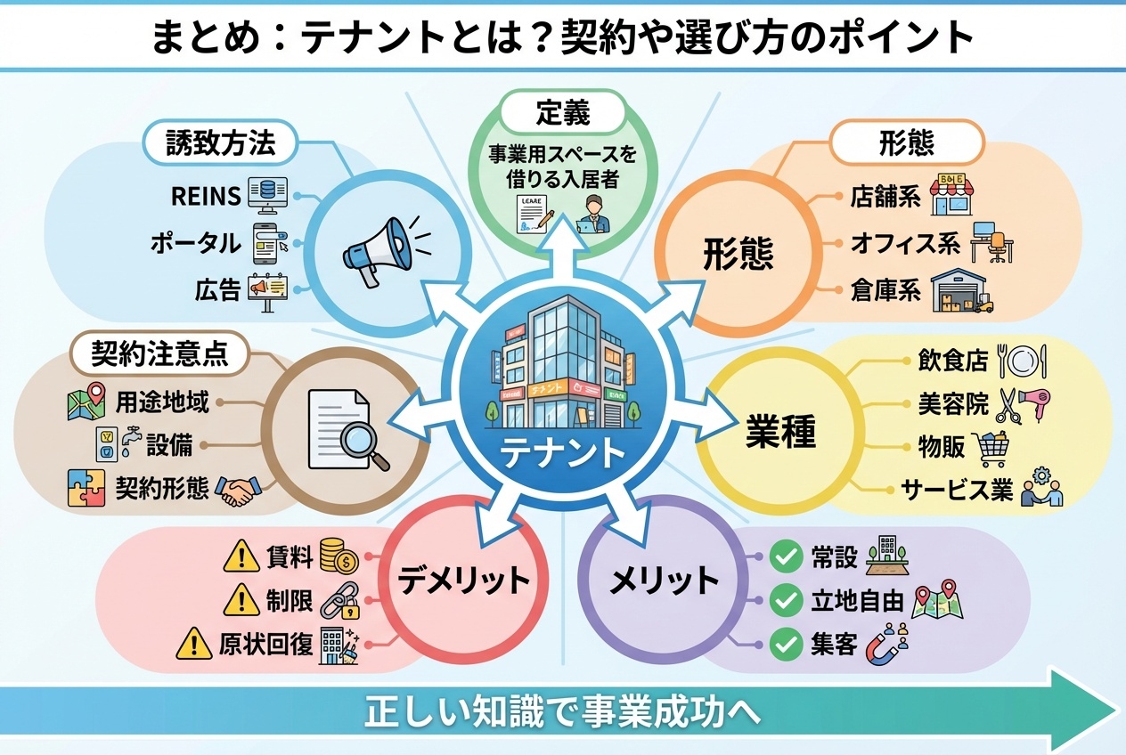 テナントとは店舗やオフィス、倉庫などを事業目的で借りる入居者のことです。テナント選びや契約形態、メリット・デメリットについて悩んでいる方も多いのではないでしょうか。この記事では、テナントの基本的な意味から、業種別の種類、契約時の注意点、誘致方法まで詳しく解説します。読むことで、賃貸借契約やテナントリーシングのポイントなど、役立つ知識を得ることができ、ビジネスに最適なテナント選びや契約の不安解消につなげられます。