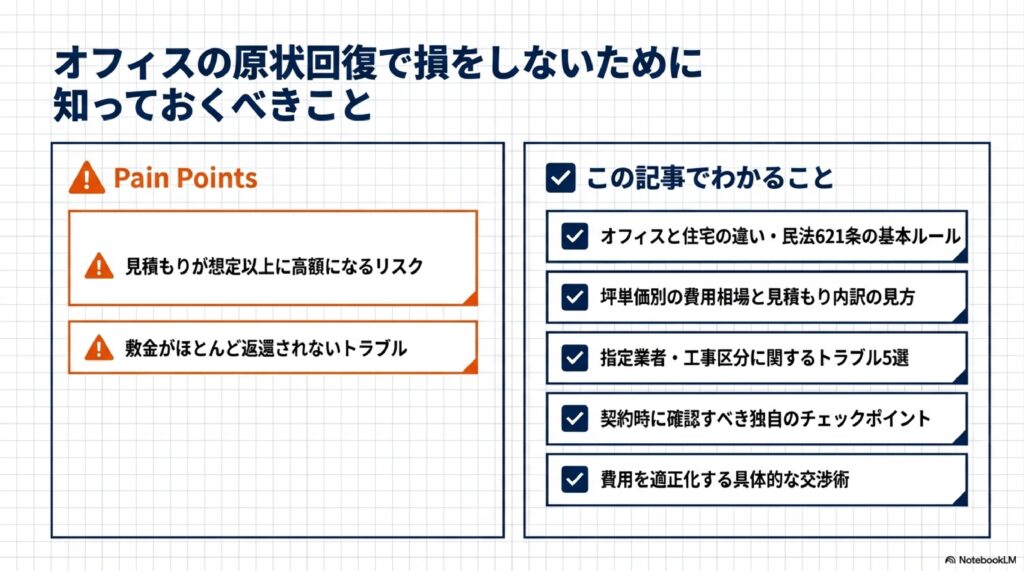 オフィスの原状回復とは?費用相場・よくあるトラブル・交渉術を徹底解説