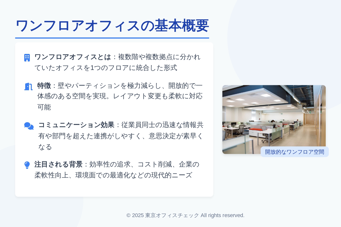 現代の企業が求める効率的なオフィス環境とはどのようなものでしょうか。実は、ワンフロアオフィスが注目されています。この記事では、ワンフロアオフィスのメリットとデメリットについて徹底的に解説し、貴社のオフィス環境を最適化するためのヒントを提供します。この記事を読むことで、ワンフロアオフィスの有効性を理解し、最適なオフィス環境の実現に向けた第一歩を踏み出しましょう。