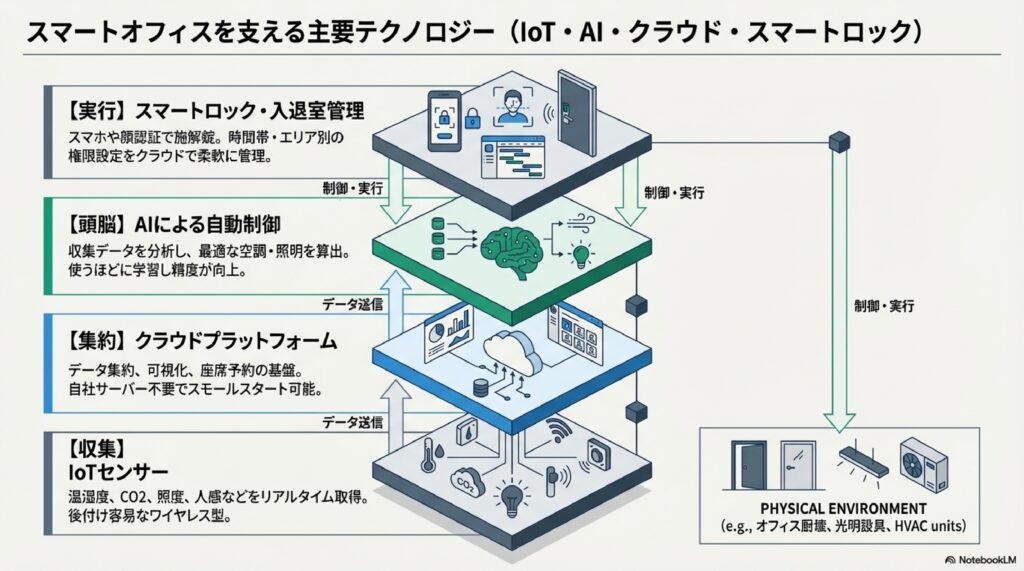 スマートオフィスを支える主要テクノロジー(IoT・AI・クラウド・スマートロック)