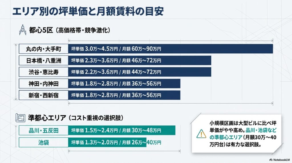 - 東京主要エリアの坪単価と月額賃料の目安