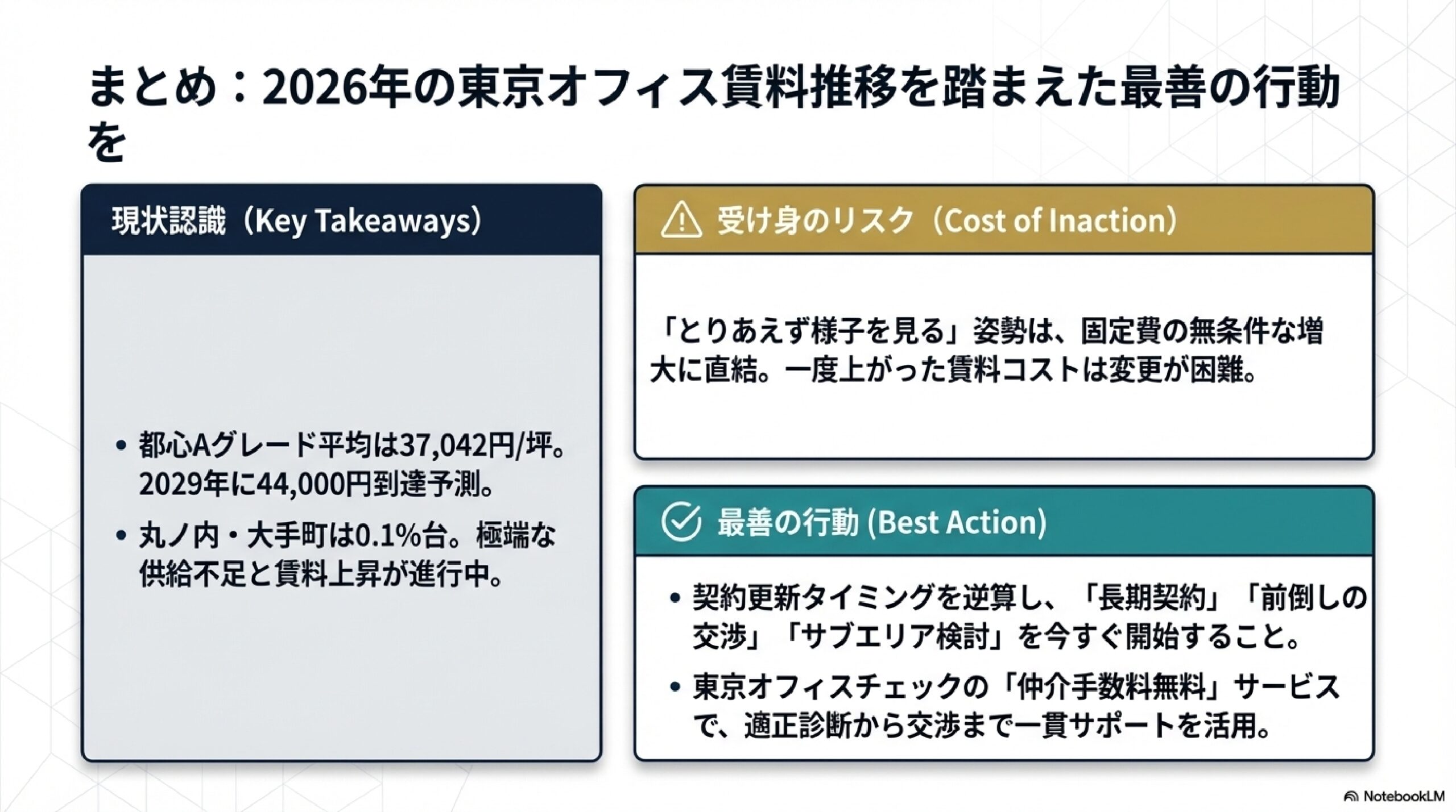 まとめ:2026年の東京オフィス賃料推移を踏まえた最善の行動を