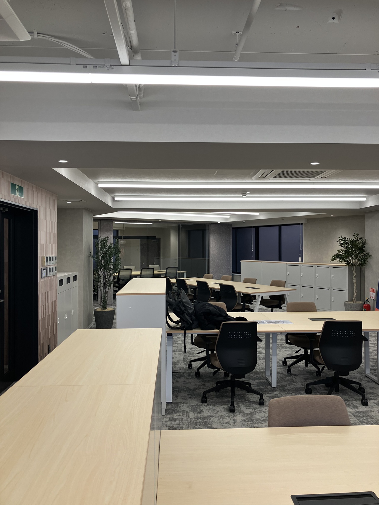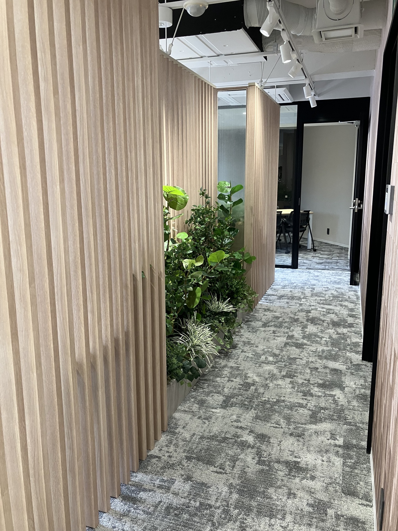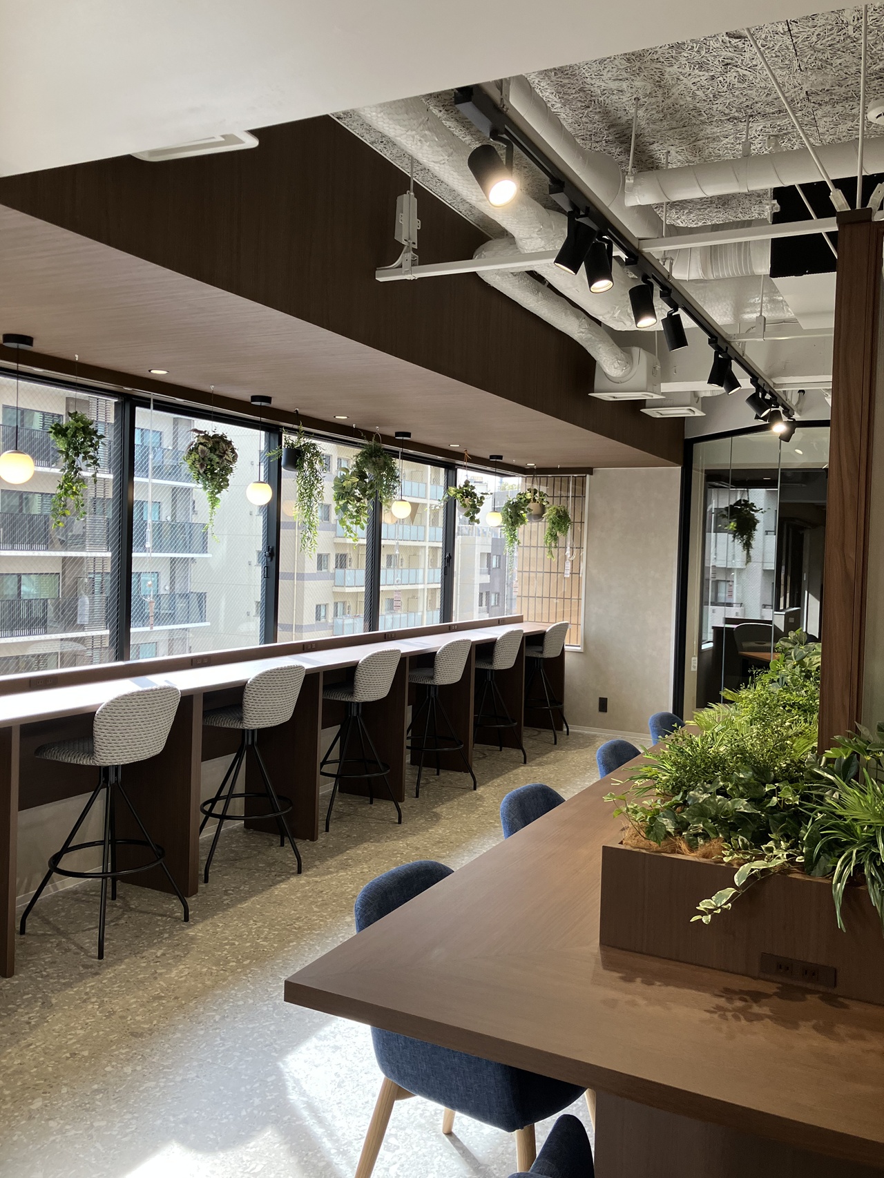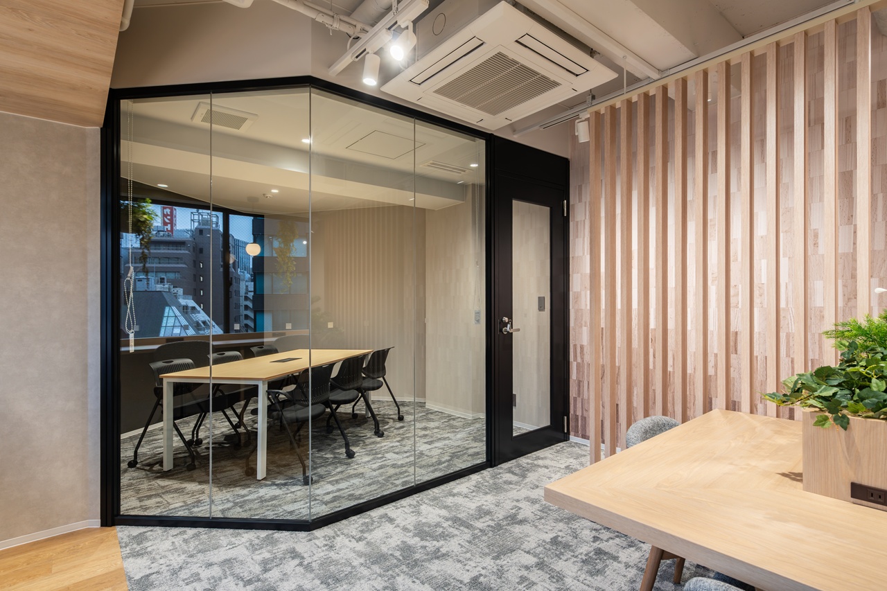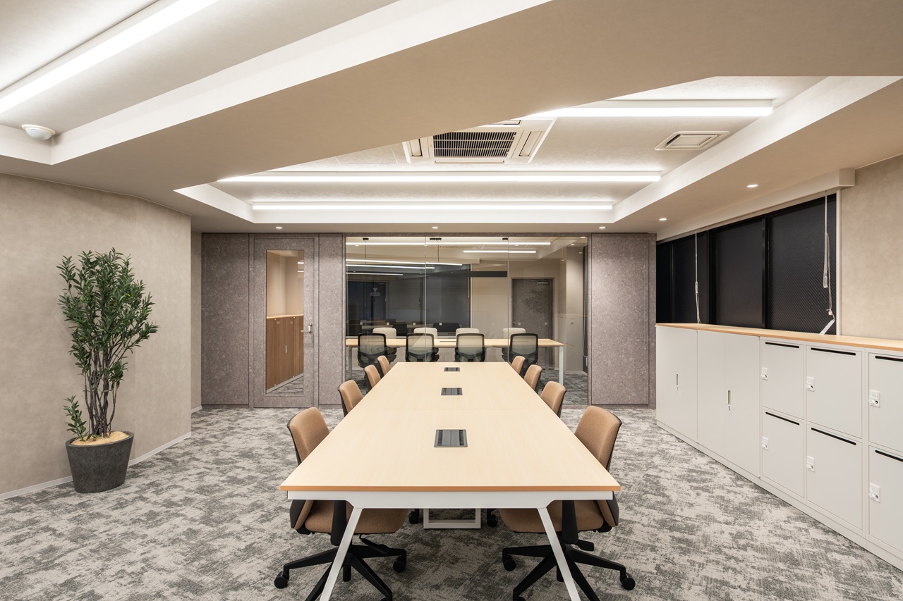 今回募集となる7階・8階の最大の特徴は、内装工事が不要な「フルセットアップオフィス」である点です。あらかじめ受付や会議室が造作されているだけでなく、執務室用のデスクなどの什器類もすべてセット済みとなっております。 室内は「木と緑に包まれた快適空間」をコンセプトにしたバイオフィリックデザインが採用されており、ホッと落ち着く環境が業務効率と社員の皆様のエンゲージメントを強力に後押しします。