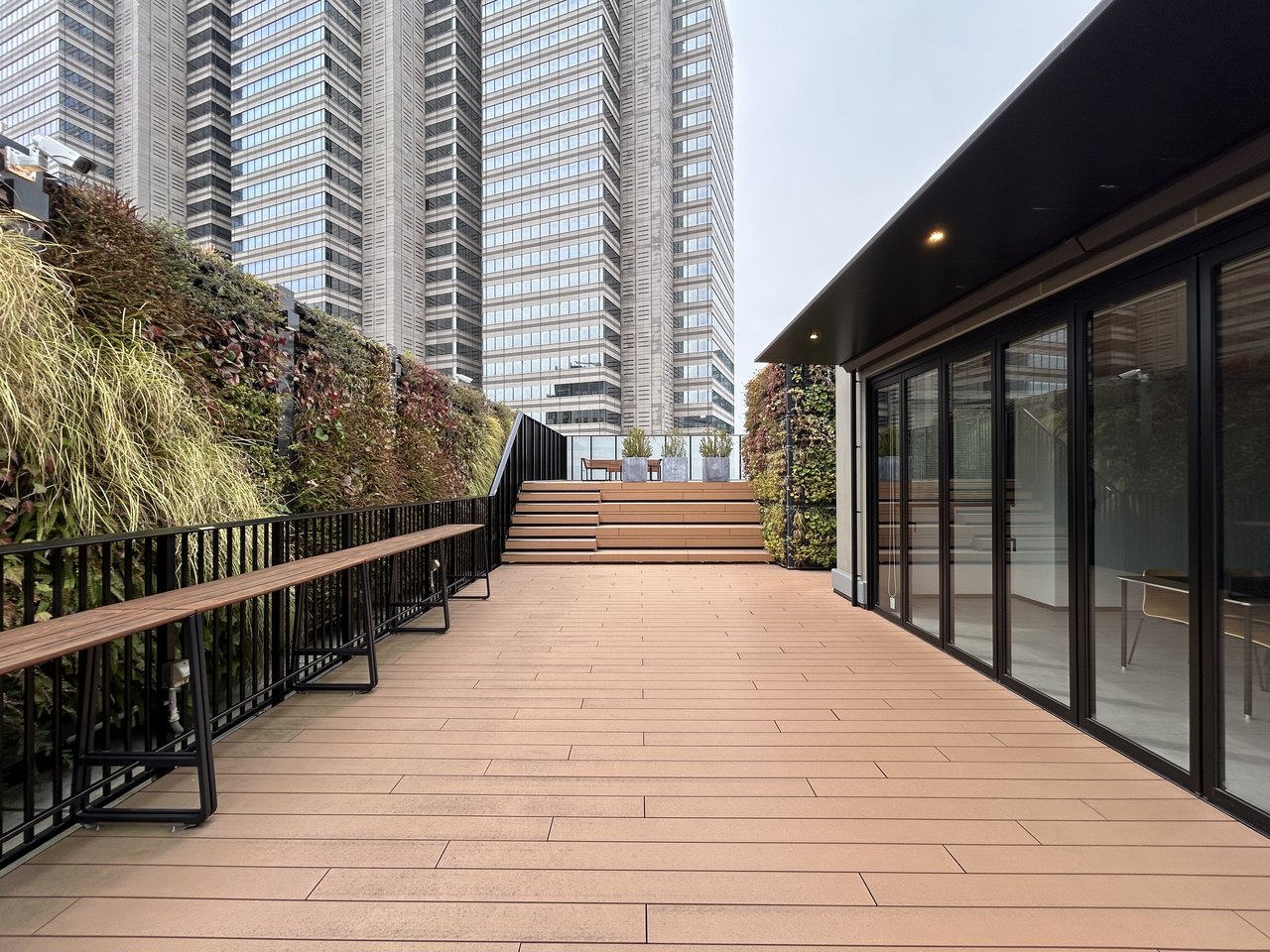 本ビルの大きな特徴の一つが、全区画にインナーバルコニーが付帯している点です。執務スペースに隣接したバルコニーは、リフレッシュスペースや打ち合わせ場所として活用でき、従業員のウェルビーイング向上にも寄与します。さらに入居者専用の屋上テラス・共用ラウンジ・無料共用会議室が整備されており、社内外のコミュニケーションを促進する場として自由に利用できます。