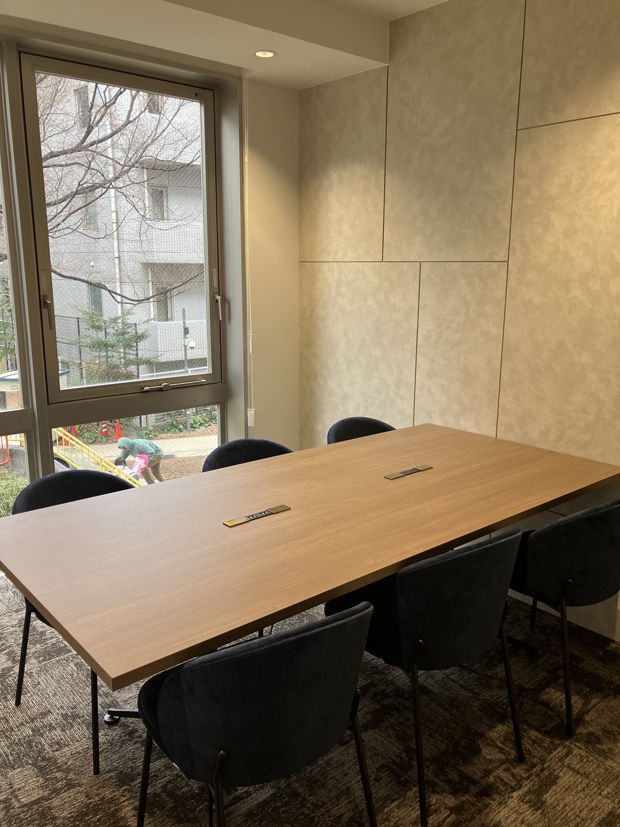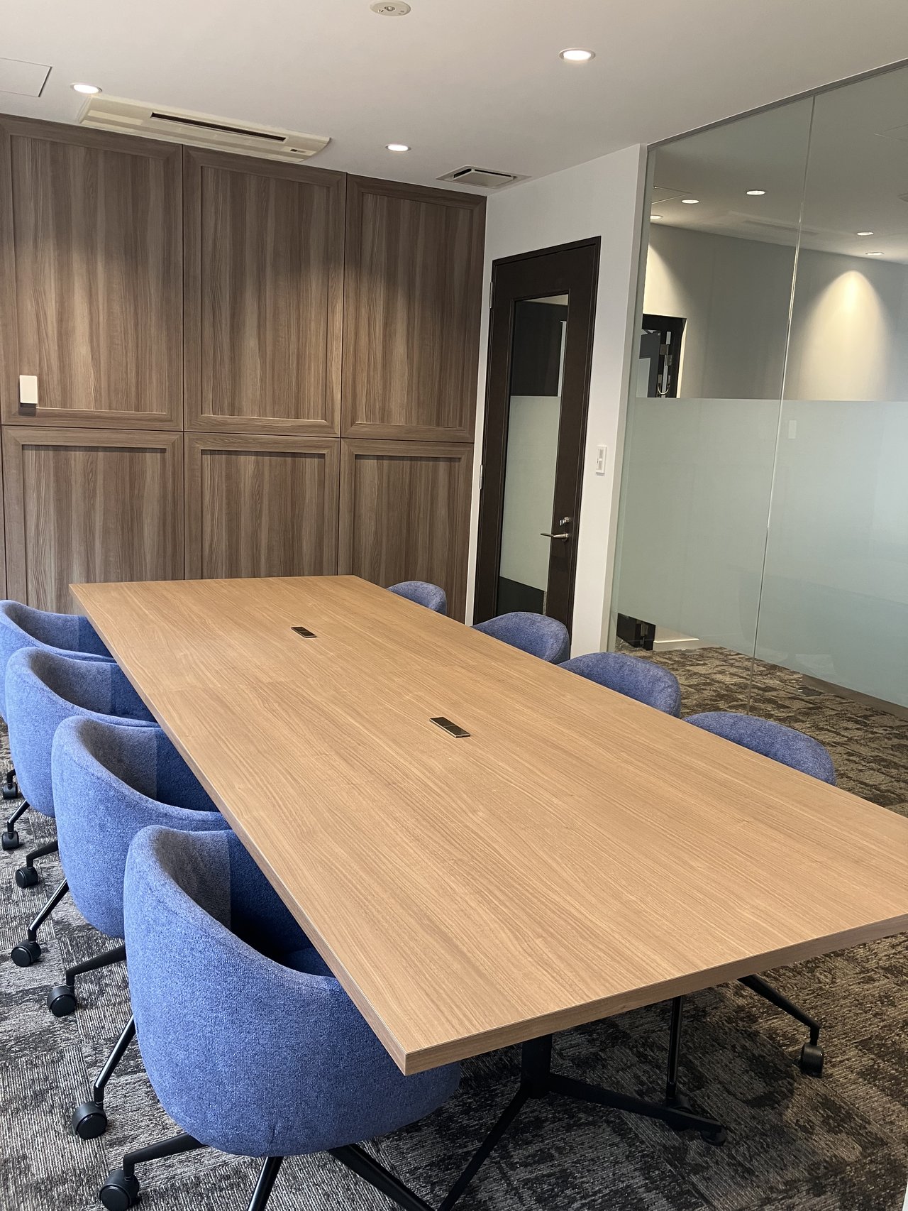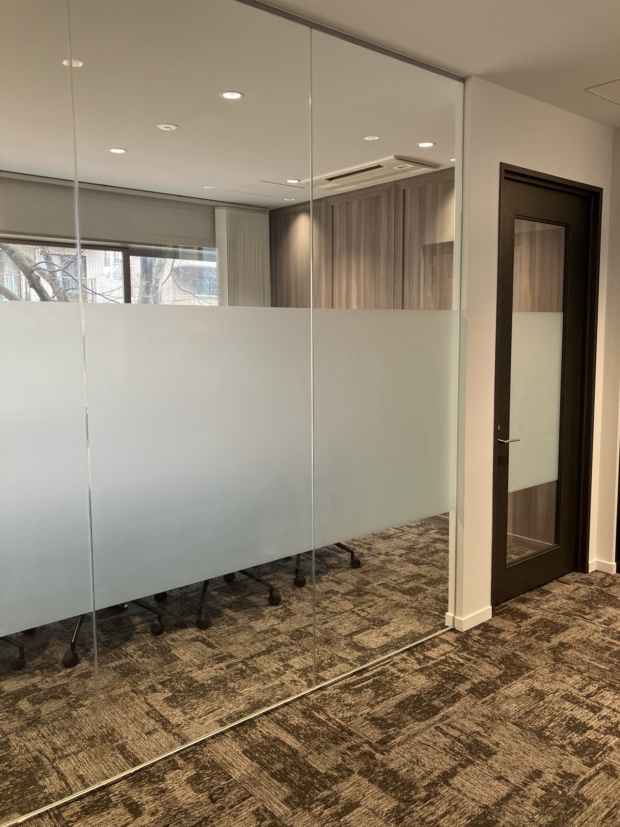 また、プライバシーが求められる会議や商談の場では、iPhoneアプリで瞬時に曇りガラス化できる「瞬間ガラス」の機能も活用できます。テクノロジーを活用した快適で効率的なオフィス運用を求める企業に最適な環境です。