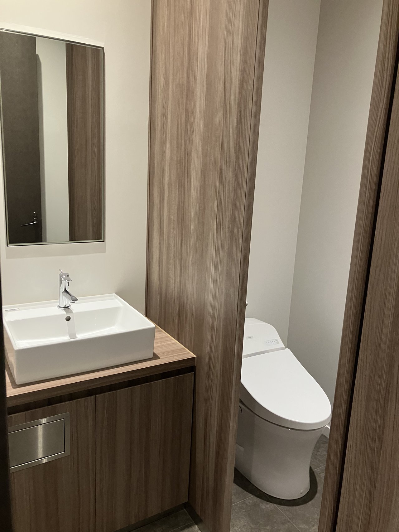 THE TERRACE TSUKIJIの最大の特徴のひとつが、充実したIoTシステムです。顔認証によるセキュアな入退室管理に加え、スマートフォンから照明・空調・エレベーター呼出の操作が可能です。さらにトイレの空き状況もアプリで確認できるため、執務フロアを離れる無駄な移動を最小限に抑えられます。アレクサとの連動も実装されており、音声による設備コントロールにも対応しています。