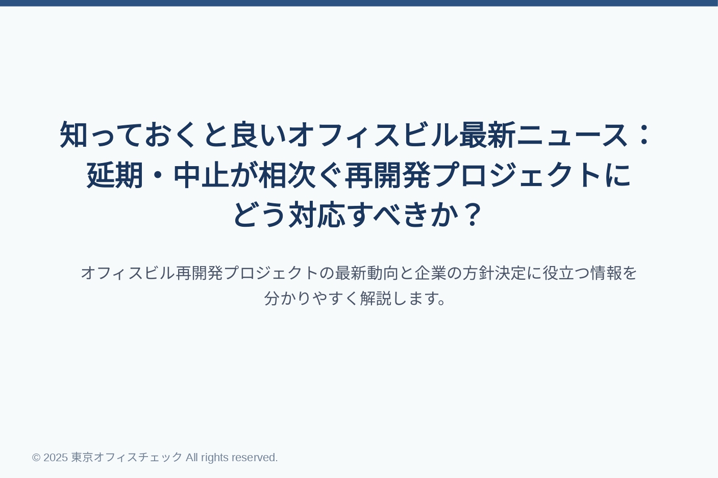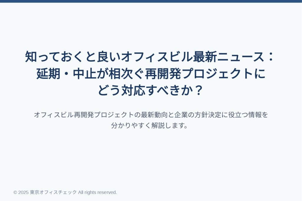 知っておくと良いオフィスビル最新ニュース:延期・中止が相次ぐ再開発プロジェクトにどう対応すべきか?