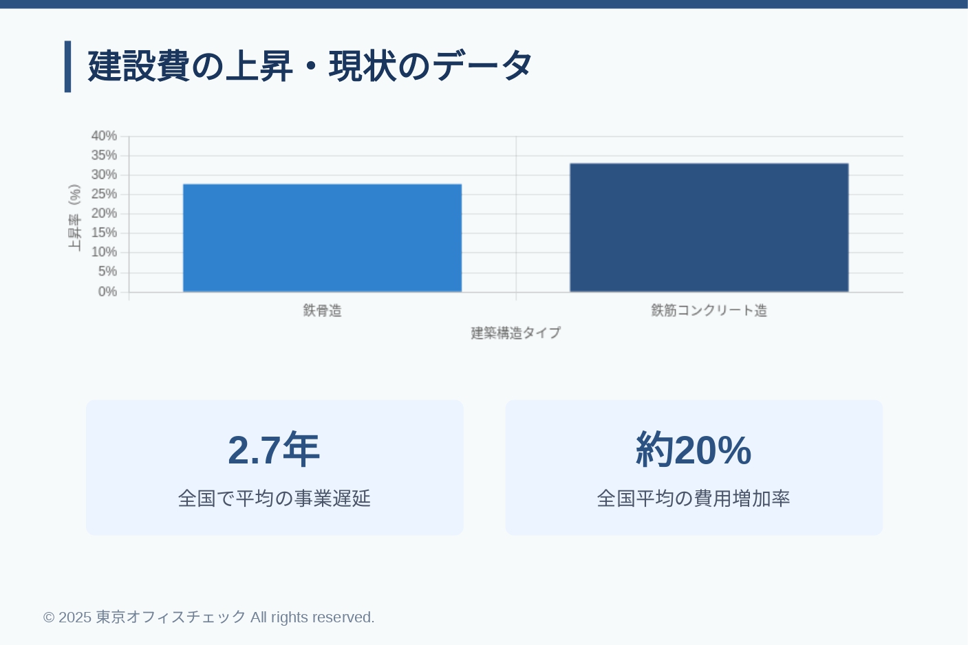 さらに深刻なのは、病院など公共施設の建て替えです。順天堂大学病院をはじめ、各地の病院建設が中止・縮小される事例が相次いでいます。これは資材価格の高騰や人件費の上昇、設備費の増加が主な原因です。建築費単価は鉄骨造で27.7%、鉄筋コンクリート造で33%も上昇しています。