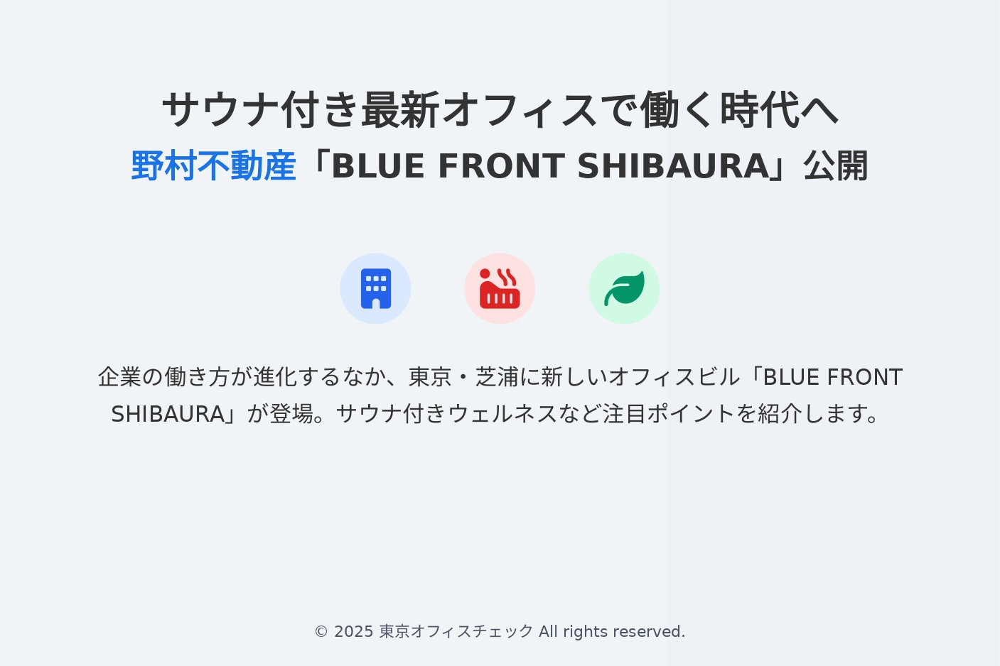 サウナ付き最新オフィスで働く時代へ——野村不動産「BLUE FRONT SHIBAURA」公開